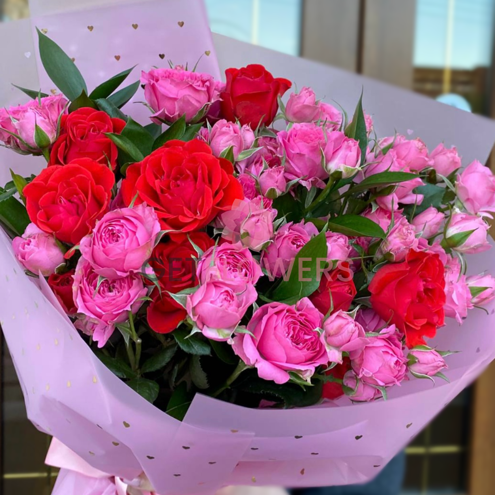 Букет из 13 красных и розовых роз