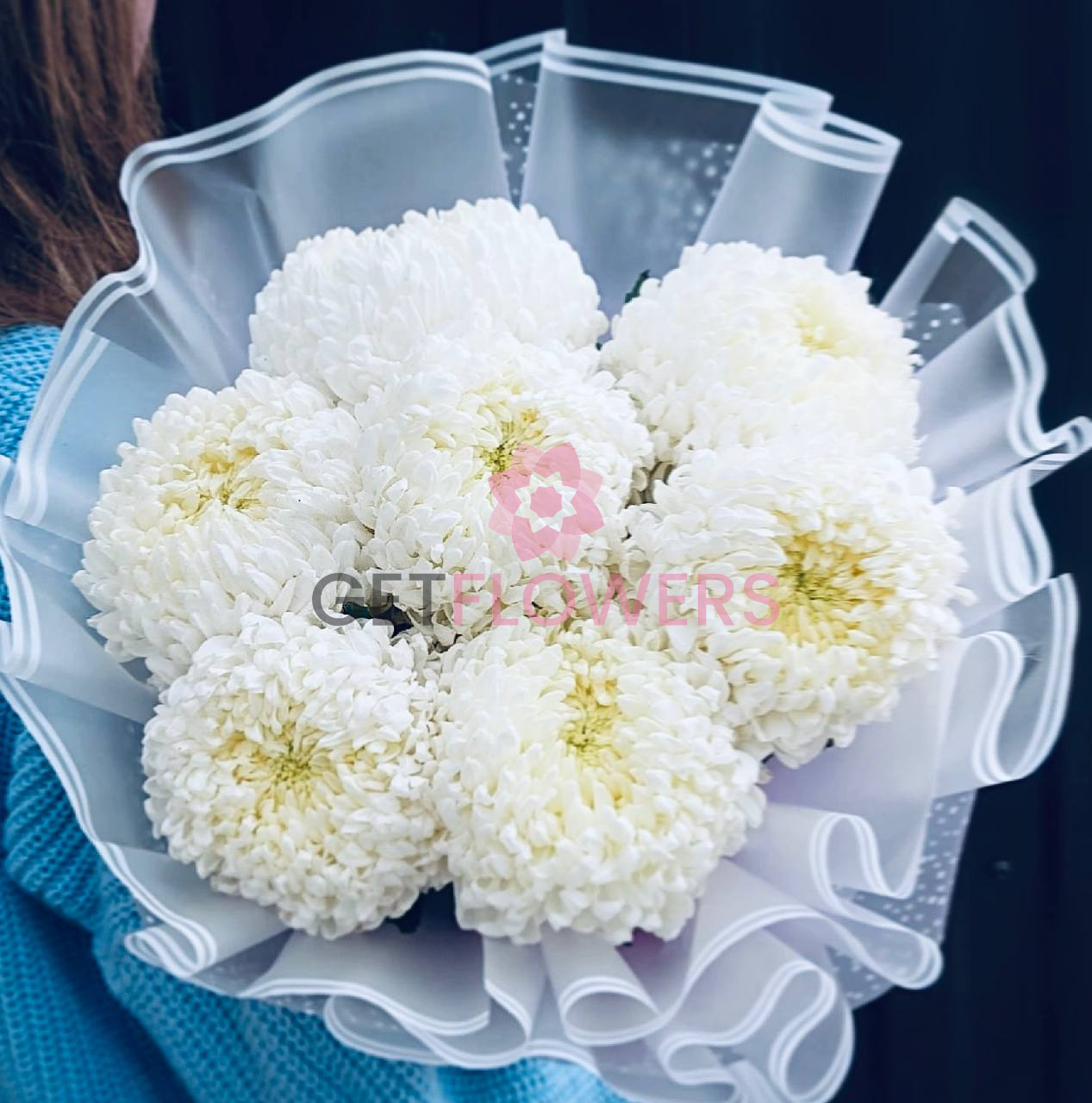 Букет из 7 белых одноголовых хризантем