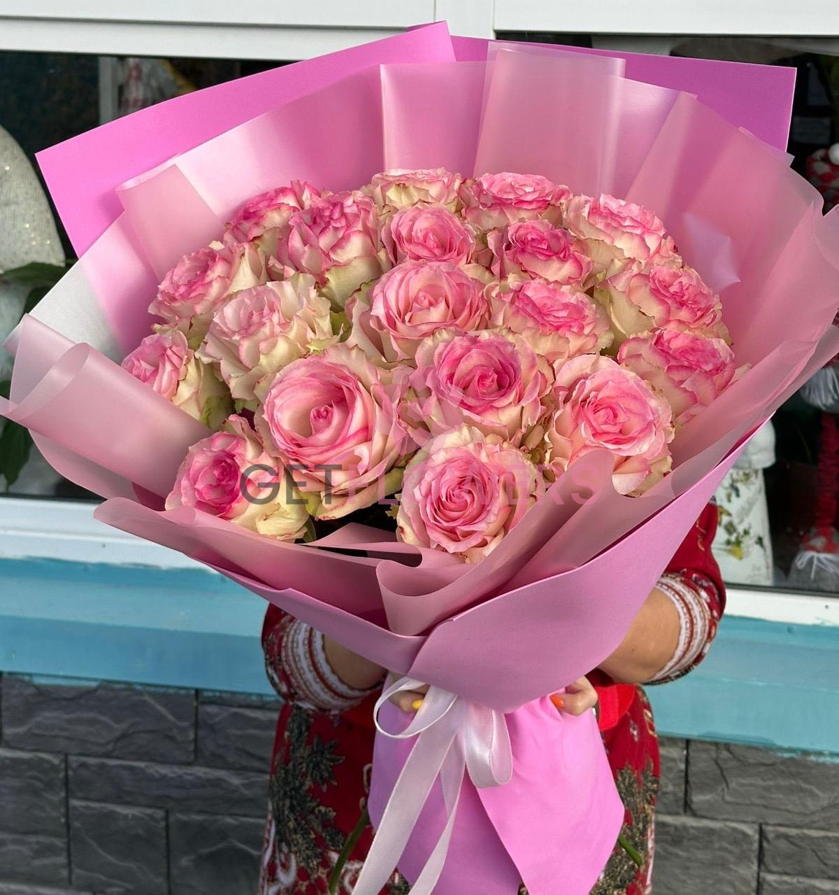 Букет из 21 бело-розовой розы