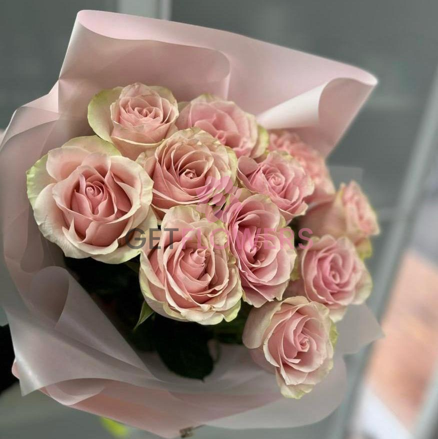 Букет из 11 розовых роз в упаковке