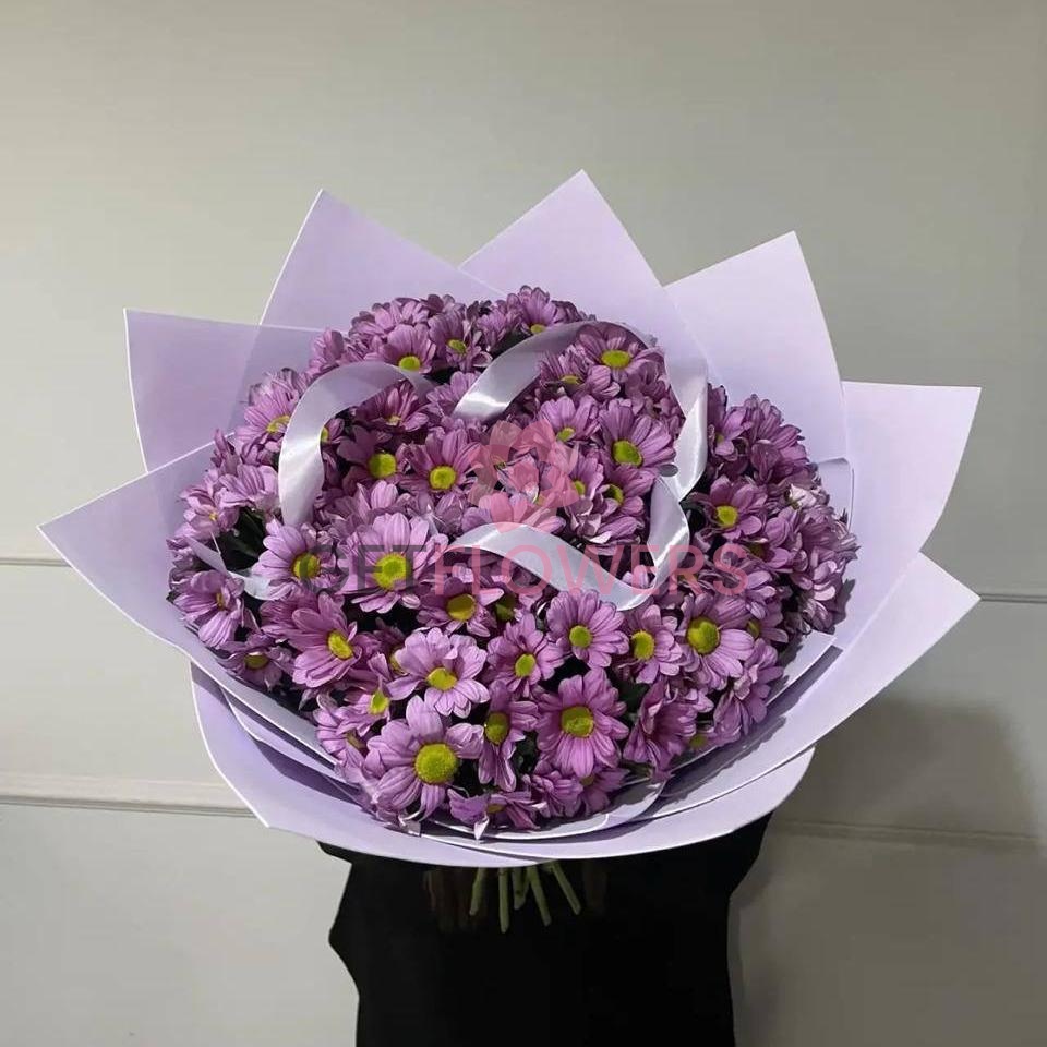 Букет из 9 сиреневых кустовых хризантем